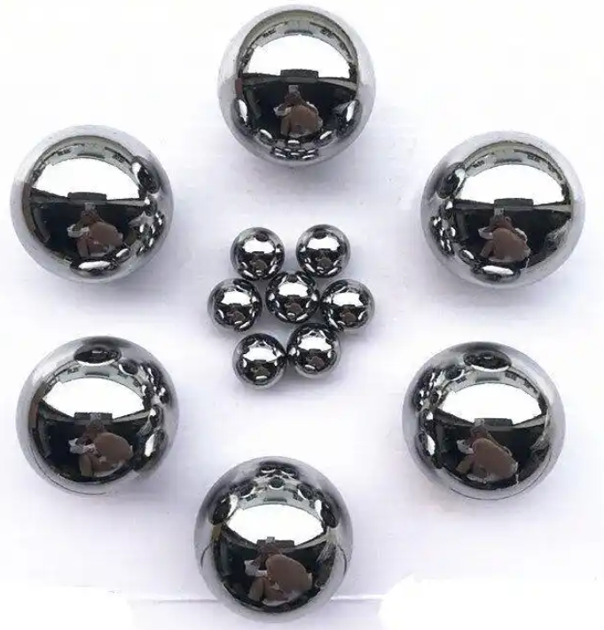 Шар из углеродистой сталимарки материала: Q195/1010, Q235/1015, 1045, 1065, 1085. В практическом спросе в основном используются шарики из низкоуглеродистой стали, то есть 1010 и 1015.